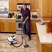 When I moved into this place the renter moving out told me, "You'll never get the kitchen and bathroom clean." I got out the bleach and went to town -- no effect on these old tile counters. When I tried this vapour cleaner, I felt like I was making my own infommercial the results were so dramatic. Some workmen left marks on the vinyl floor last year that I couldn't even identify, let alone get up; adhesive was my best guess. The WhiteWing got them up like they were just pencil marks. I couldn't stop cleaning til the tank ran out (and house work isn't my strong suit!). Highly recommended! (Note: this is my first steam cleaner, so can't compare to other brands).